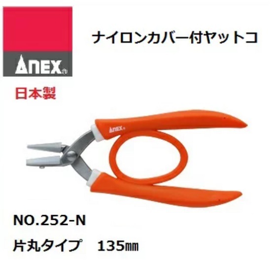 アネックス【日本製】クラフトツールナイロンカバー付ラバーグリップヤットコNO.252-N 片丸タイプ 130mmビーズの道具 ビーズアクセサリー 手芸用