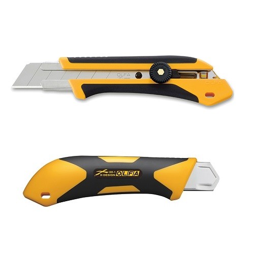 握ったときに、滑らず力のかけやすい形状を追求したX(エックス)デザイン・ハイパーシリーズの特大H型カッターナイフ。
