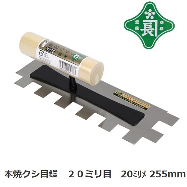緑長 本焼 クシメ鏝 20mm目 255mm くし目・櫛目【左官、れんがこて、左官道具・ブロックコテ】【藤原産業 SK11】クシ目