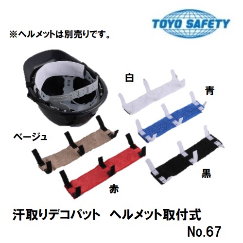 トーヨーセフティー ヘルメット用汗取りタオル 汗取りデコパット1枚入りNo.67【防暑対策】白・青・黒・赤・ベージュ