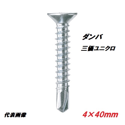 【6個までネコポス可能】若井産業(ワカイ産業)ダンバ セルフドリルネジ サラ4×40mm 40本入 鉄工用ビス 三価ユニクロ(三価クロメート青白)WAKAIねじ