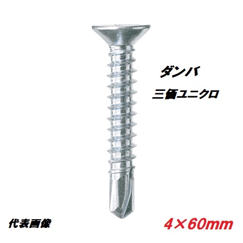 【6個までネコポス可能】若井産業(ワカイ産業)ダンバ セルフドリルネジ サラ4×60mm 20本入 鉄工用ビス 三価ユニクロ(三価クロメート青白)WAKAIねじ