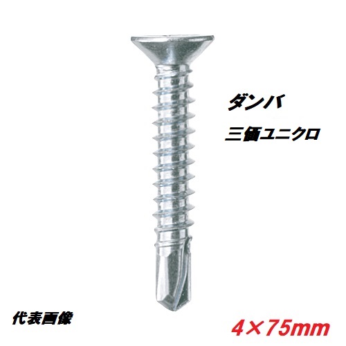 【6個までネコポス可能】若井産業(ワカイ産業)ダンバ セルフドリルネジ サラ4×75mm 15本入 鉄工用ビス 三価ユニクロ(三価クロメート青白)WAKAIねじ