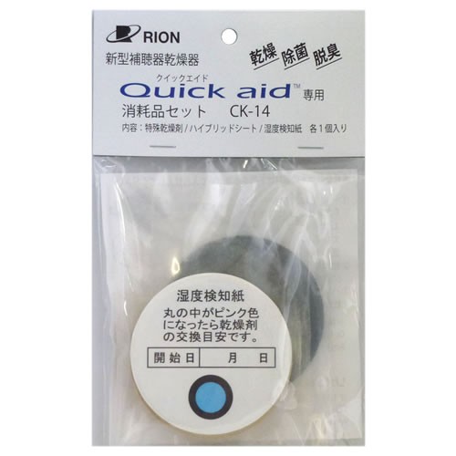 補聴器専用の乾燥器「クイックエイド」は、乾燥・除菌・脱臭の効果を得るには、専用の詰替用乾燥剤(消耗品)が必要となります。 詰替用乾燥剤には、乾燥剤・ハイブリッドシート・湿度検知紙が入っています。