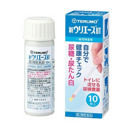 新ウリエースBT10枚入は、尿糖・尿たん白チェックを家庭で素早く、かんたんに。毎日の体調チェックにお役立てください。