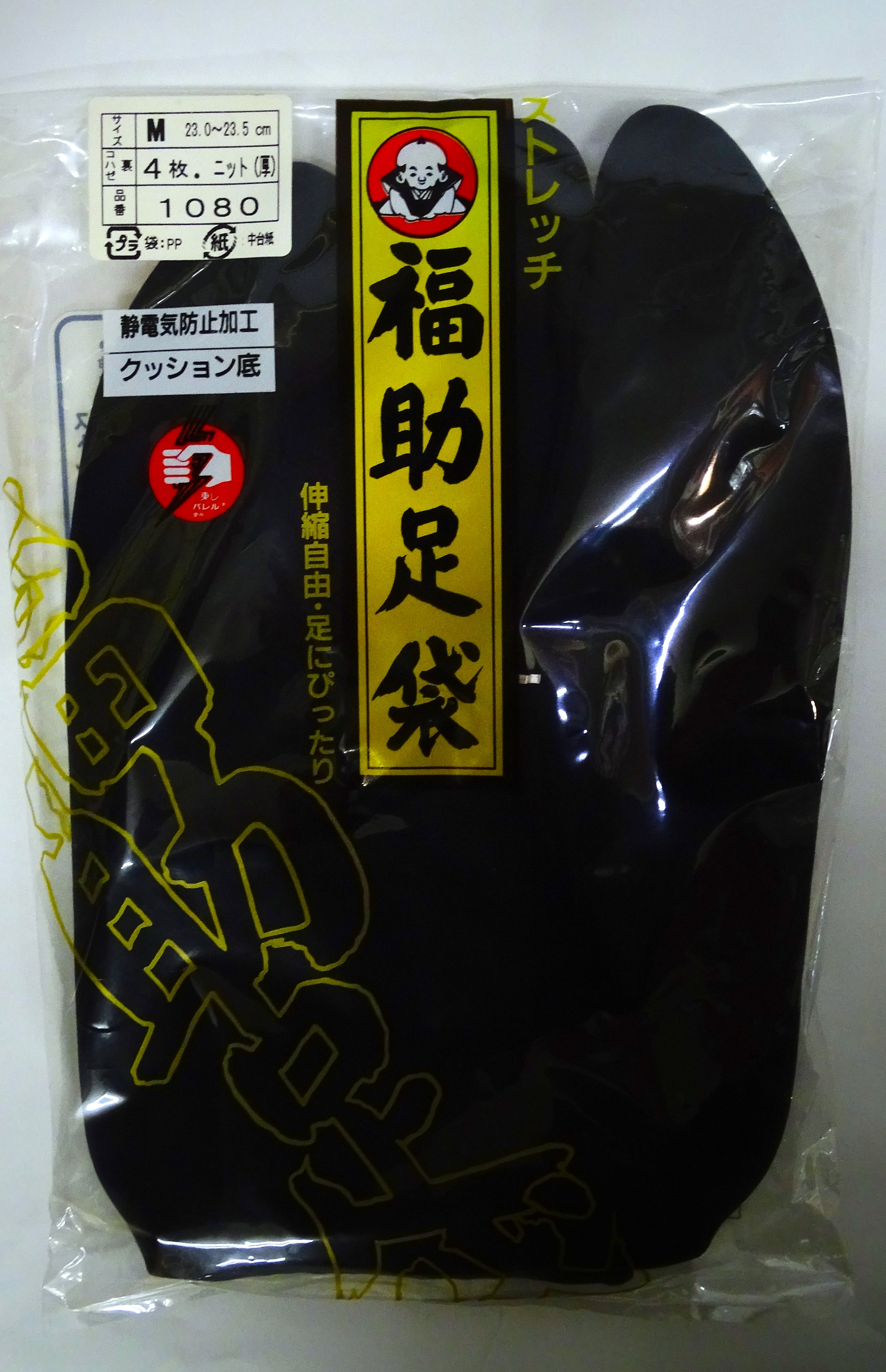 福助ストレッチ足袋 4枚コハゼ 黒色 M L 紳士用 大特価