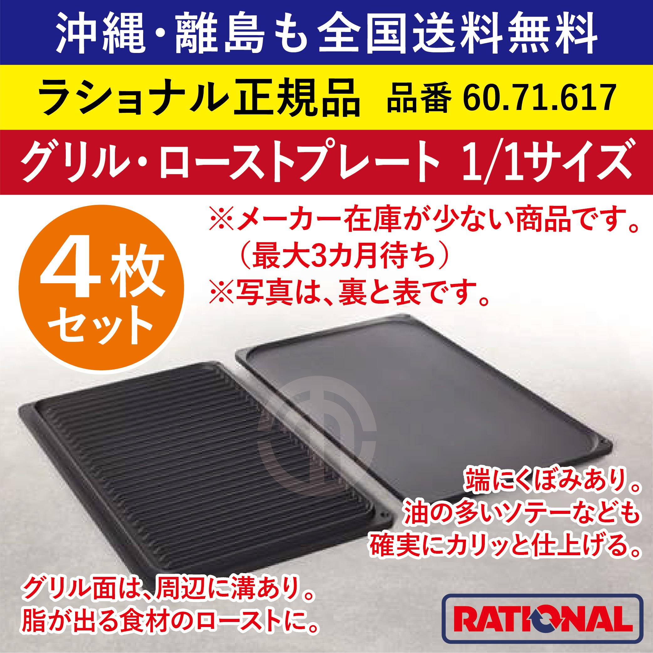 ★4枚セット★ ラショナル スチコン用 グリル・ローストプレート 1/1GN 1/1 焼き目を付ける 両面使える 脂が出る食材に オーブン トレイ 天板 60.71.617 ★4枚★