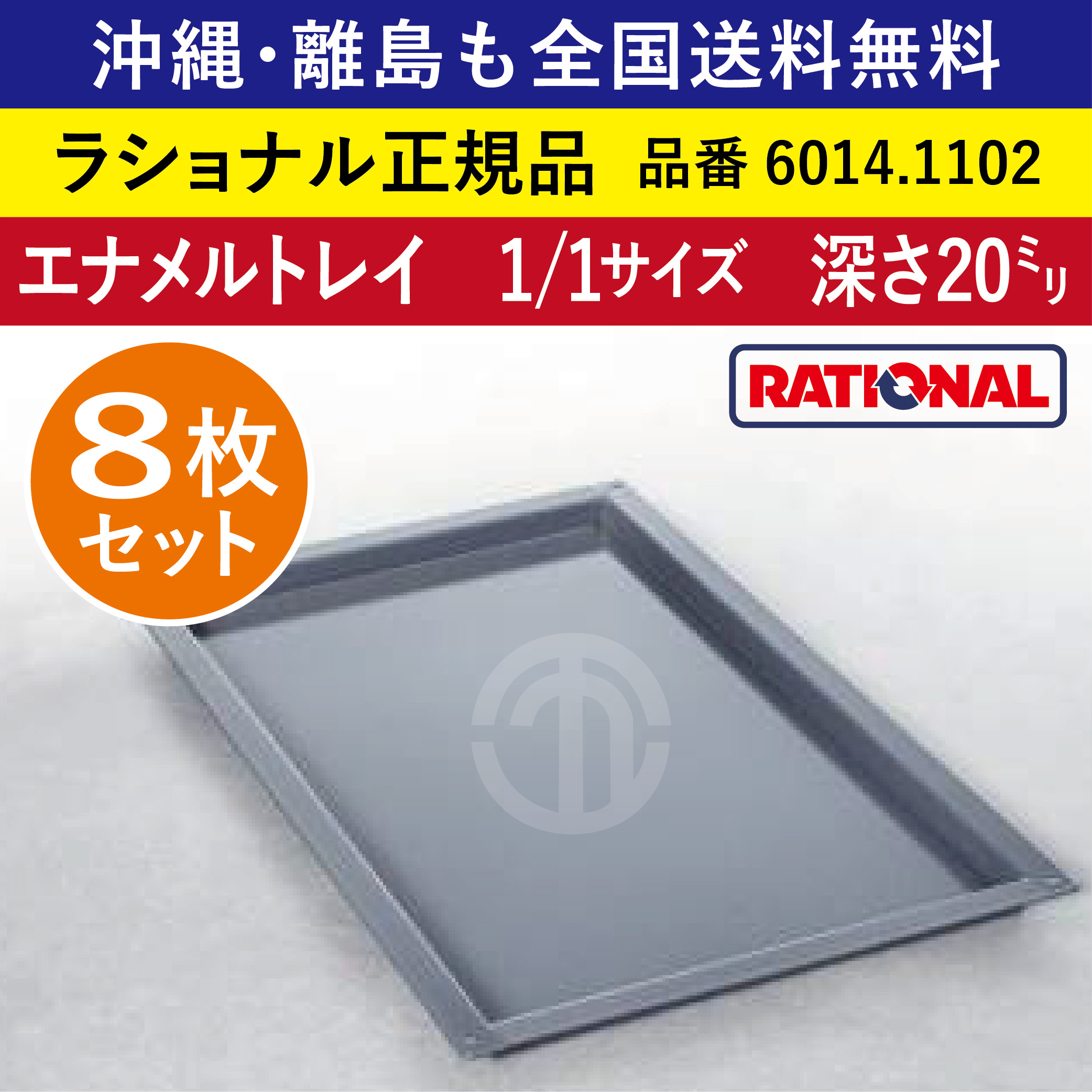 ★8枚セット★ ラショナル スチコン用 エナメルトレイ 1/1GN 1/1 深さ 20mm ケーキ ピザ エナメルトレー トレー 天板 全国送料無料 6014.1102 ★8枚★