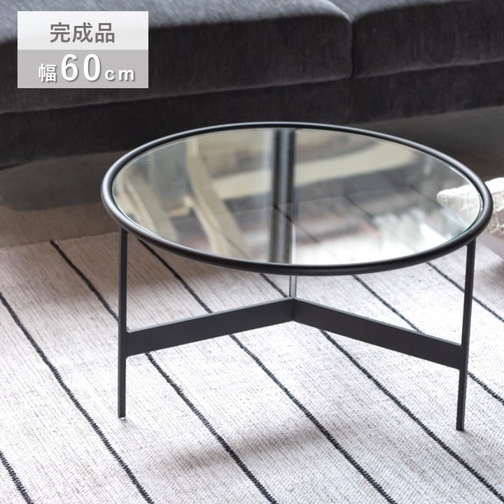 ガラステーブル 丸 幅60cm ブラックアイアン アイアンテーブル お洒落 モダン ローテーブル スタイリッシュ 円形ガラス ガラス天板 丸型 ラウンドテーブル