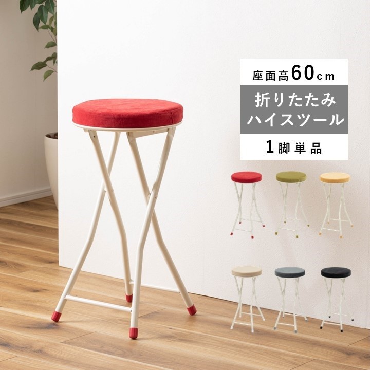ベロアのような柔らかい手触りのスツール。シンプルでカラーバリエーションも豊富な人気のスツールにハイタイプが登場!お部屋が明るくなる白いスチール脚で馴染みやすいデザインです。折りたたむことができて省スペース設計となっている為、狭いスペースにも気兼ねなく置くことができます。