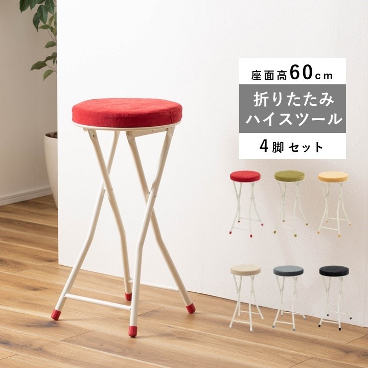 4脚セット 折りたたみスツール 折りたたみ椅子 ハイスツール 丸椅子 北欧 軽量 丸型 コンパクト 省スぺース カウンター キッチン 肘なし アームレス 白脚