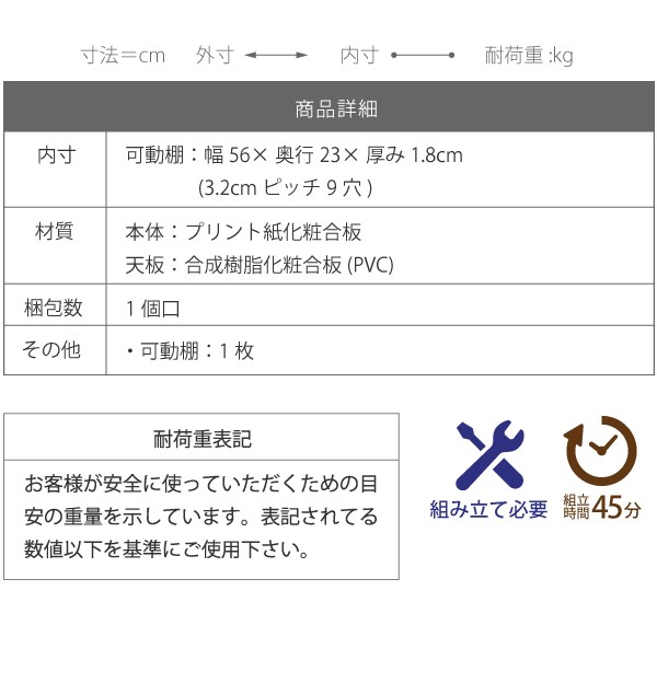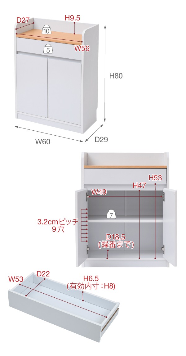 [外寸]幅60×奥行29×高さ80cm