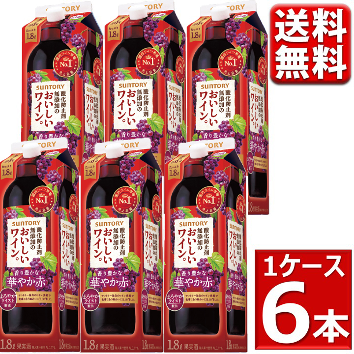 酸化防止剤無添加ワイン 送料無料 一部地域除 サントリー 酸化防止剤無添加のおいしいワイン 香り豊かな華やか赤 1800ml 6本 1ケース 箱 1.8L 無添加 ワイン 赤