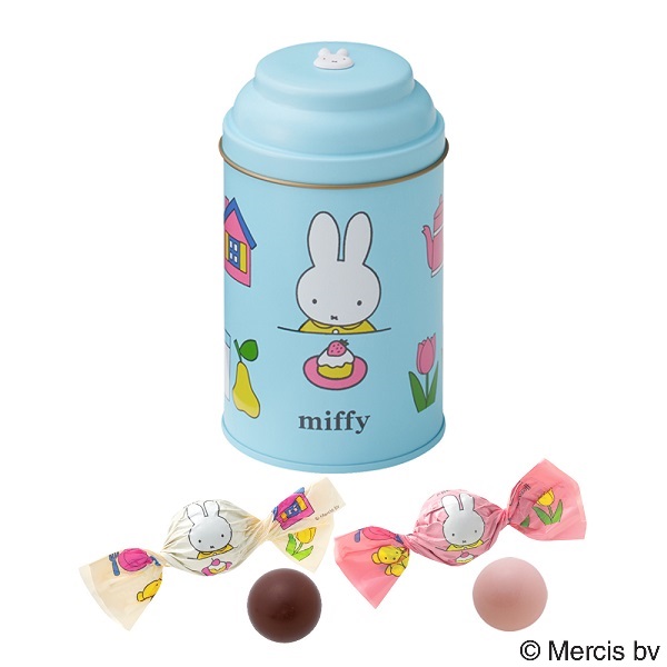 ケーキを楽しむミッフィーがデザインされたお洒落なティーポット缶に、ストロベリークリーム、ティーキャラメル2種類のオリジナル個包装のトリュフショコラをアソートしました。集めて並べても可愛いシリーズです。