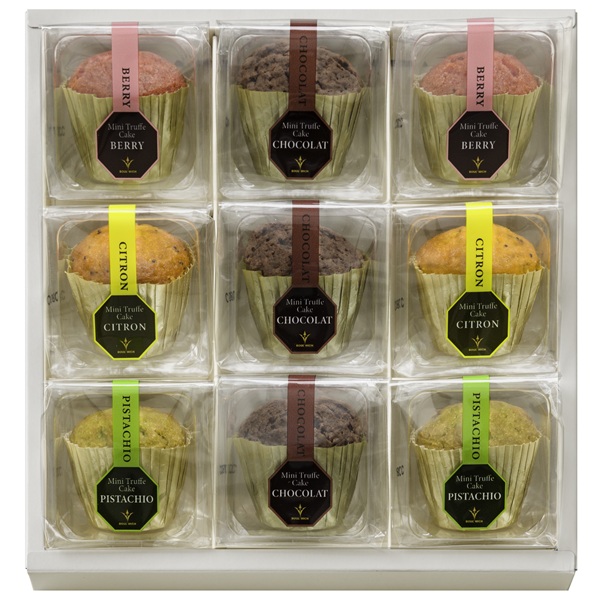 内容量:ミニトリュフケーキ×3、ミニトリュフケーキ(ベリー・ピスタチオ・レモン)×各2個