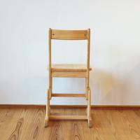 4cmピッチ4段階に高さ調節ができる、ヒノキ板座の可動式学習チェアです。