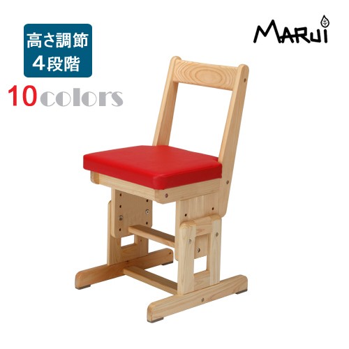 4cmピッチ4段階に高さ調節ができる、ヒノキの可動式学習チェアに、カラフルなビニールレザー製のクッションが付きました。