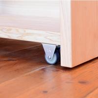 手前と奥方向にだけ動くキャスター付きで、本を出し入れするときは手前に引いて、終わったら奥に戻すと言った使い方が出来ます。