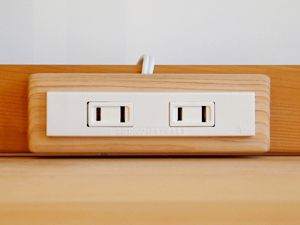 無機質な印象を与えがちのコンセントを、ヒノキ無垢材で包み、愛らしいデザインになりました。
