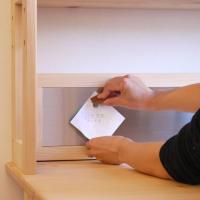 ヒノキ学習机M型(幅100cm)の上置き(デスクスタンドM型)に取り付けて使う、ヒノキフレームのステンレスボード(単品)です。