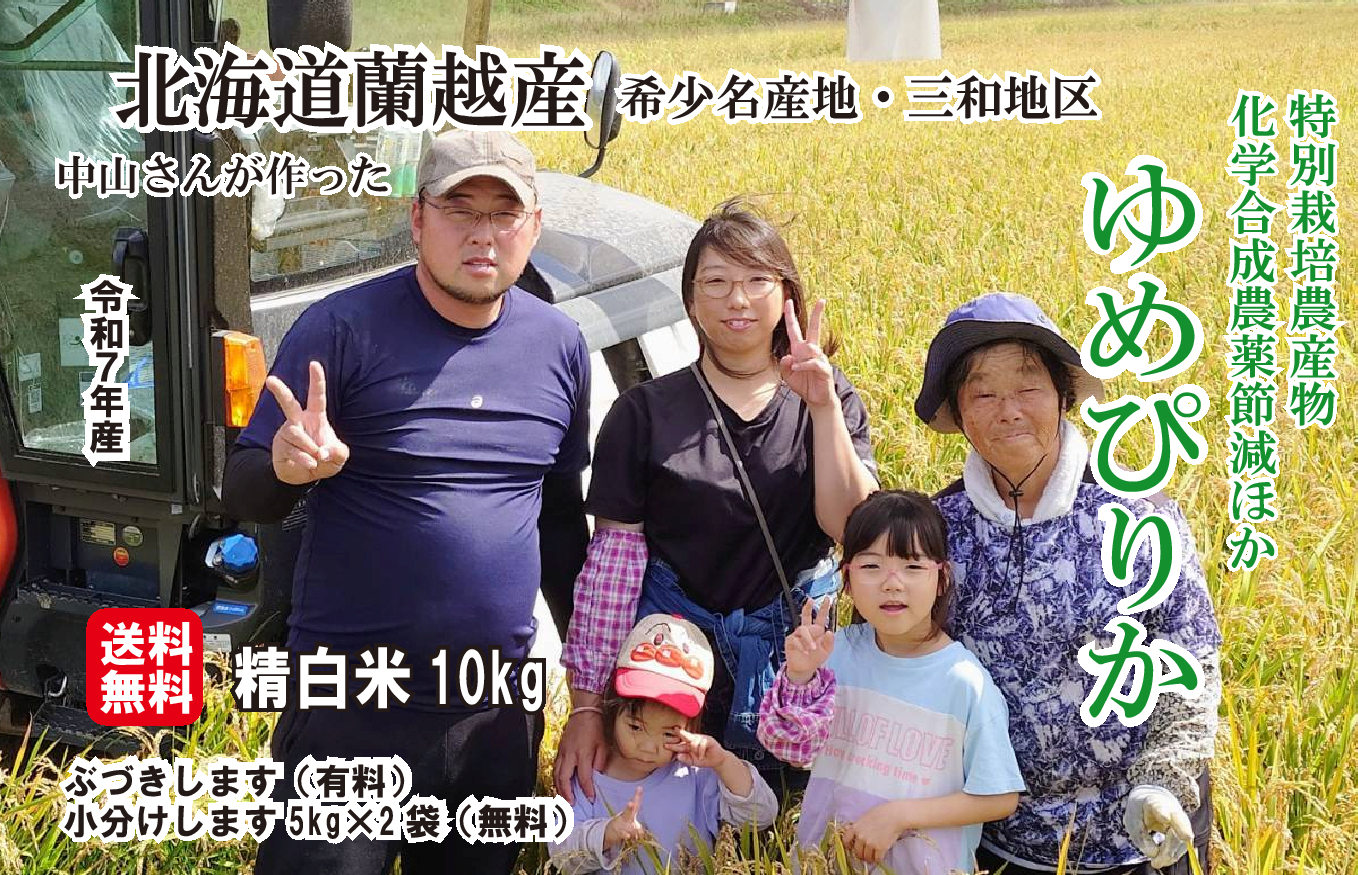 【7年産】 北海道米 蘭越産 らんこし米 特別栽培米 ゆめぴりか 10キロ 送料無料 減農薬 減化学肥料 中山さん 5kg小分け無料