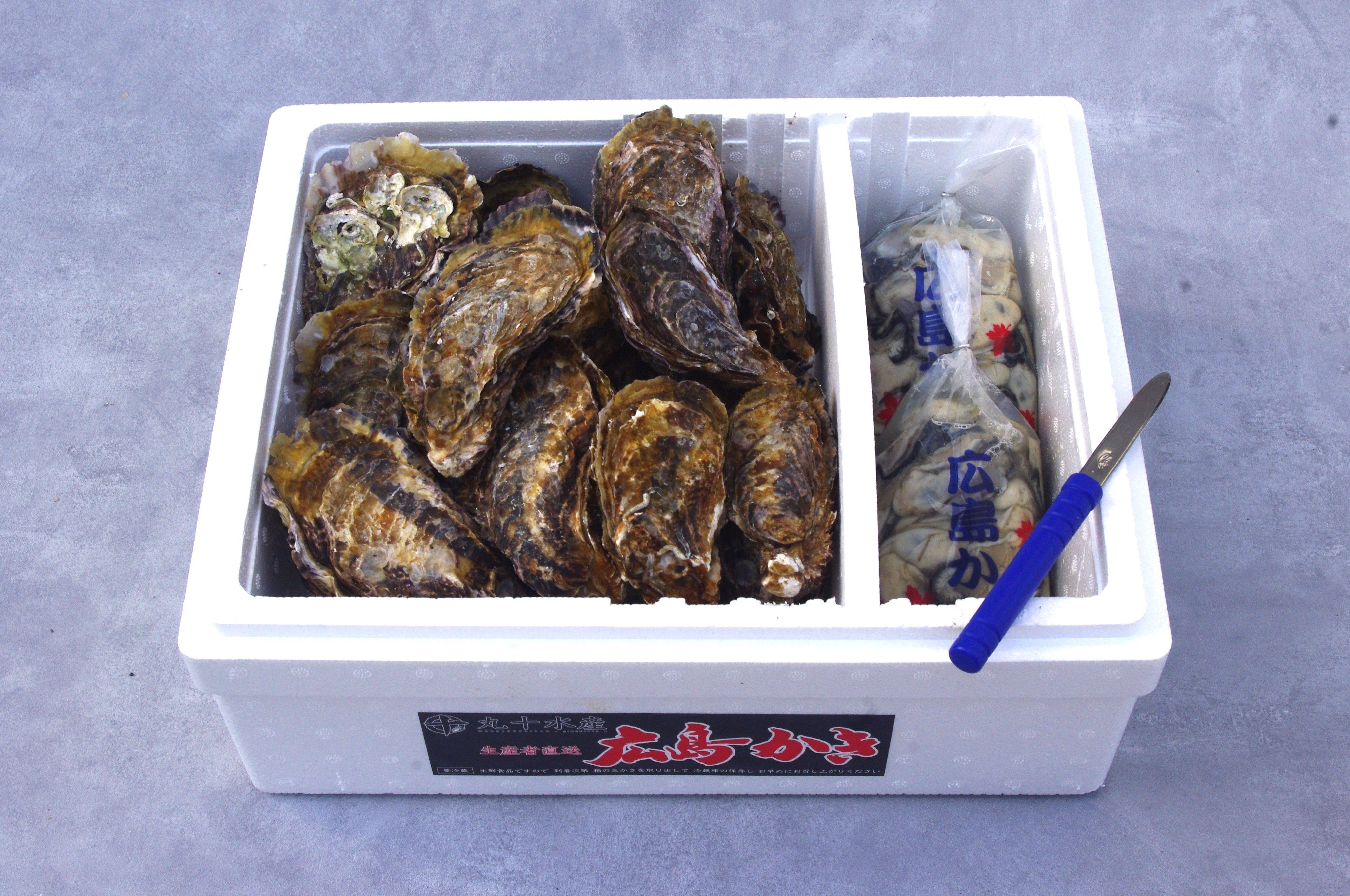 むき身と殻付かきの両方を味わいたいという方必見!殻付かきの食べ方電子レンジで・・・お皿に5個くらい並べてラップをし、約4〜7分フライパンで・・・フライパンに並べてフタをして、約15〜20分オーブンで・・・アルミ箔に包んで、約15〜20分※殻の口が開いたら出来上がりです。※上記の時間でもまだ生っぽかったら、時間を追加してください。※熱くなりますので軍手やタオルなどを使って、やけどしないようご注意ください。むき身かきの食べ方袋から取り出しザルに入れ、塩などで振り洗いし水道水でよくすすいでください。カキフライ、カキのオイル漬け、牡蠣ご飯、鍋物など。※【加熱調理用】で出荷いたします。※殻付き牡蠣は重量で箱詰めいたしますので、個数はおおよその数を表示しております。時期や生育具合によって大きさが異なるため個数が前後いたしますのでご了承ください。※殻付き牡蠣は大きいもの、重いものを選んでお入れしますが、殻付き牡蠣は中身が見えないため稀に身入りの悪いものなどが入る場合があります。その場合は、数個多めに入れておりますのでご容赦ください。※1日の水揚げ生産量に限りがありますので、注文多数の場合は、発送日の変更のお願いや受付の一時中止をする場合もありますのでご了承下さい。 ◆内容量:むき身牡蠣500g×2袋 殻付牡蠣(広島ブランド牡蠣 かき小町)4kg(24〜32個)◆保存方法:むき身牡蠣:冷蔵庫で保存してください。 殻付牡蠣:風通しの良い所、10度以下で保存してください。冷蔵庫で保存する場合は、湿らせた新聞紙等でくるむなどして乾燥しないようにしてください。◆お届け方法:産地から冷蔵便でお届けします。◆消費期限:出荷日含め4日間◆調理レシピ付き※価格は消費税込みの金額です。