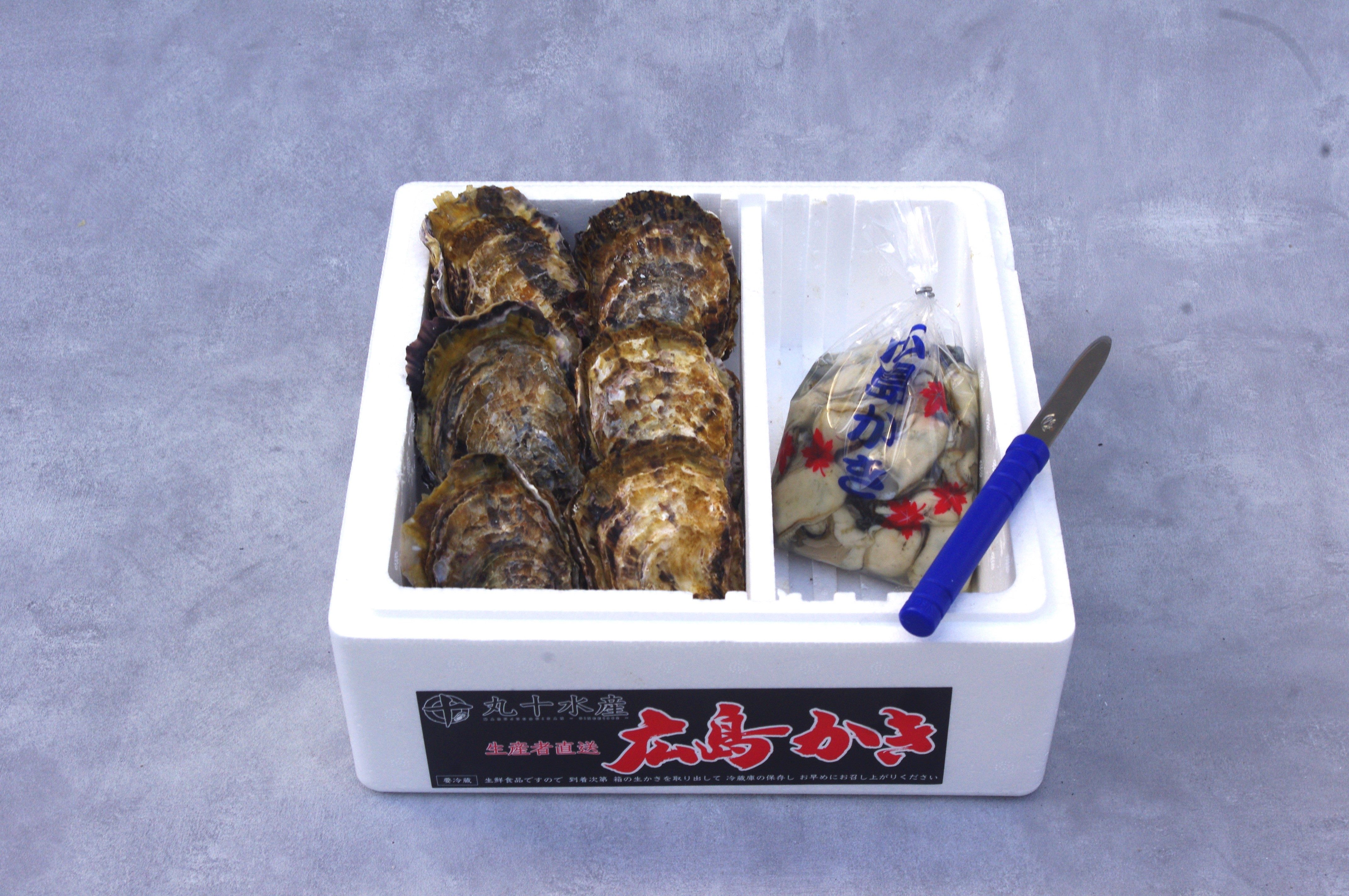 むき身と殻付かきの両方を味わいたいという方必見!殻付かきの食べ方電子レンジで・・・お皿に5個くらい並べてラップをし、約4〜7分フライパンで・・・フライパンに並べてフタをして、約15〜20分オーブンで・・・アルミ箔に包んで、約15〜20分※殻の口が開いたら出来上がりです。※上記の時間でもまだ生っぽかったら、時間を追加してください。※熱くなりますので軍手やタオルなどを使って、やけどしないようご注意ください。むき身かきの食べ方袋から取り出しザルに入れ、塩などで振り洗いし水道水でよくすすいでください。カキフライ、カキのオイル漬け、牡蠣ご飯、鍋物など。※【加熱調理用】で出荷いたします。※殻付き牡蠣は重量で箱詰めいたしますので、個数はおおよその数を表示しております。時期や生育具合によって大きさが異なるため個数が前後いたしますのでご了承ください。※殻付き牡蠣は大きいもの、重いものを選んでお入れしますが、殻付き牡蠣は中身が見えないため稀に身入りの悪いものなどが入る場合があります。その場合は、数個多めに入れておりますのでご容赦ください。※1日の水揚げ生産量に限りがありますので、注文多数の場合は、発送日の変更のお願いや受付の一時中止をする場合もありますのでご了承下さい。 ◆内容量:むき身牡蠣700g×1袋 殻付牡蠣(広島ブランド牡蠣 かき小町)1kg(6〜8個)◆保存方法:むき身牡蠣:冷蔵庫で保存してください。 殻付牡蠣:風通しの良い所、10度以下で保存してください。冷蔵庫で保存する場合は、湿らせた新聞紙等でくるむなどして乾燥しないようにしてください。◆お届け方法:産地から冷蔵便でお届けします。◆消費期限:出荷日含め4日間◆調理レシピ付き※価格は消費税込みの金額です。