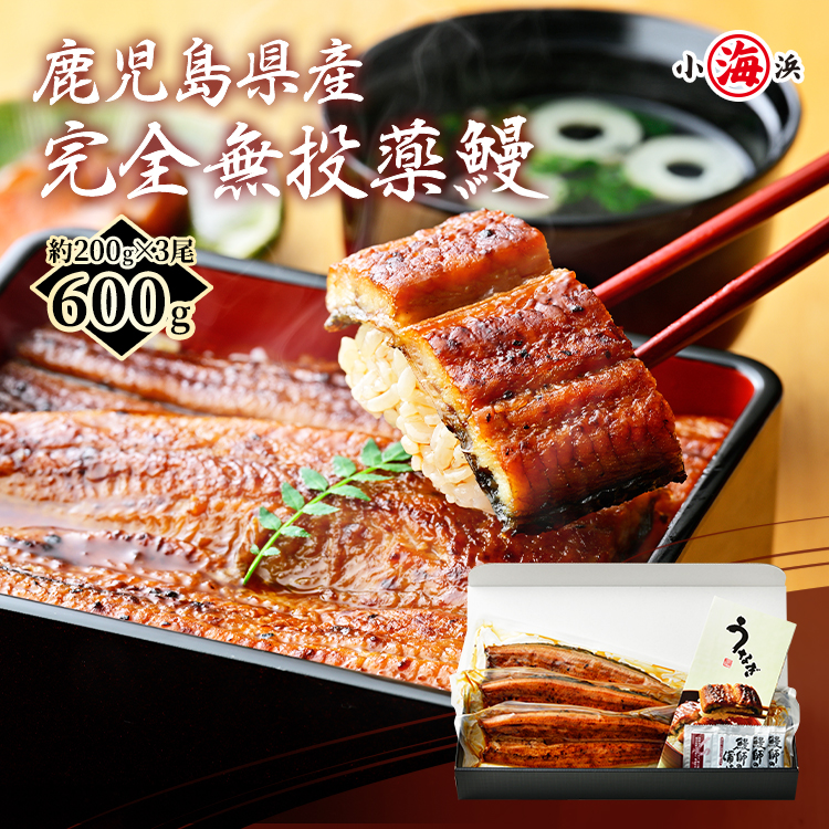 うなぎ蒲焼き 国産 約200g×3尾 完全無投薬 鹿児島県産 人気 特大サイズ 化粧箱入 蒲焼きうなぎ蒲焼き うなぎ 爆買