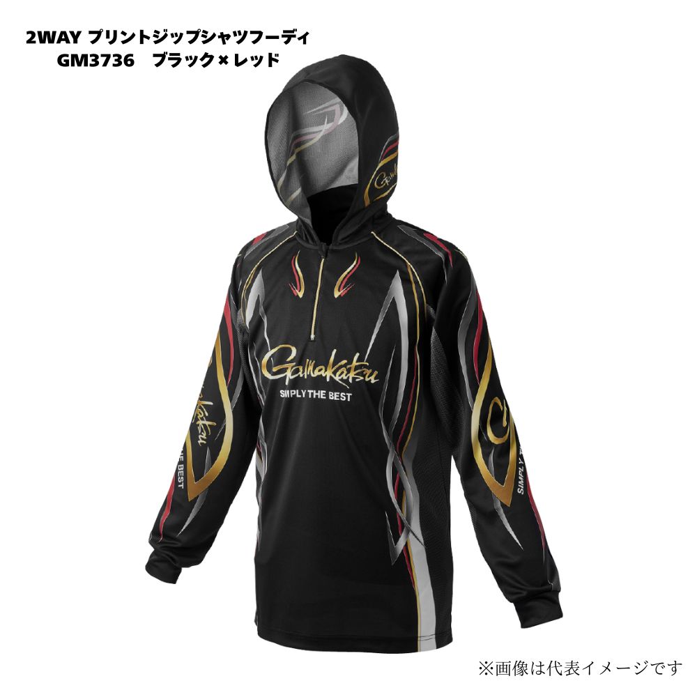 がまかつ 2WAY プリントジップシャツフーディ GM3736 ブラック×レッド 夏物ウェア アウトドア