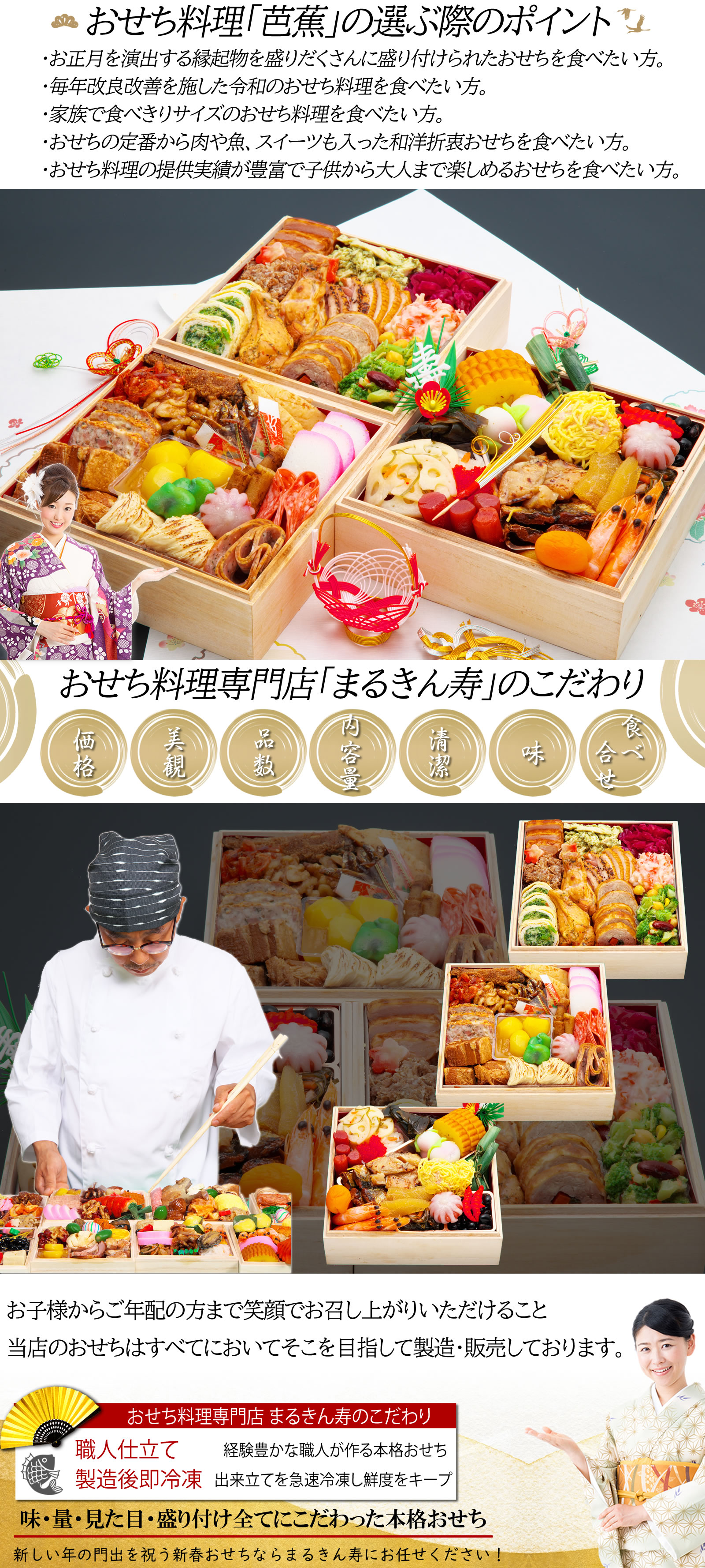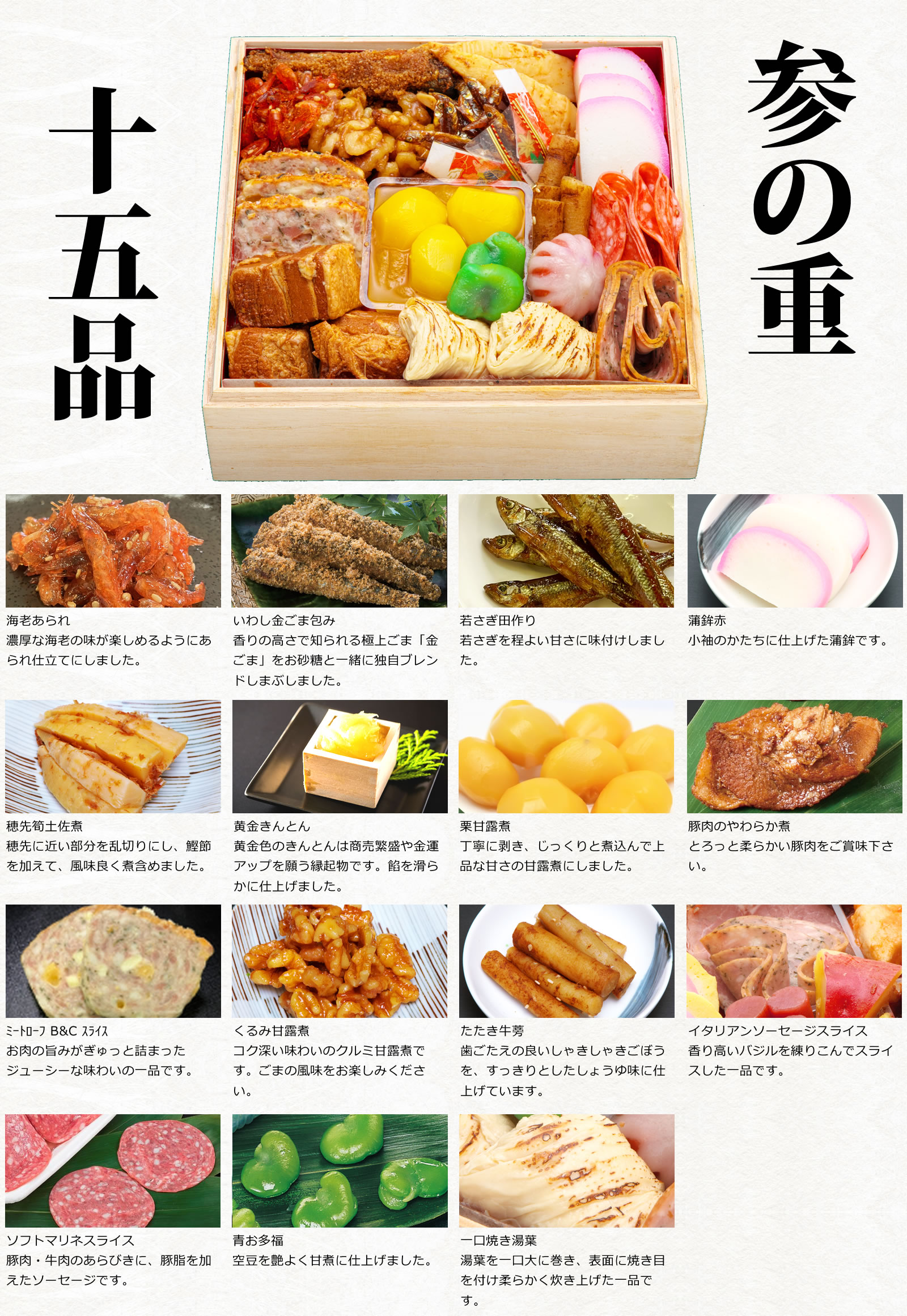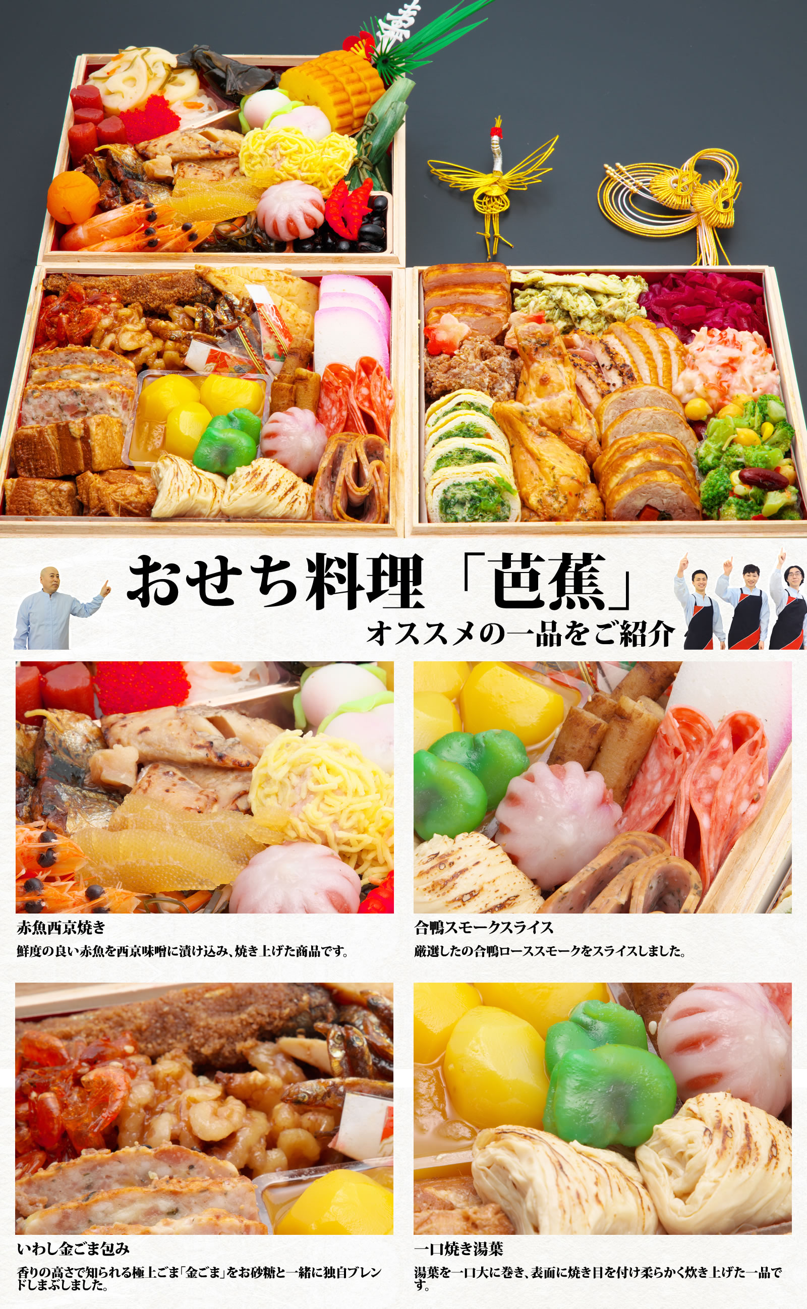 【完売御礼】三段重おせち「芭蕉」 6.5寸3人前4人前45品入 全国送料無料