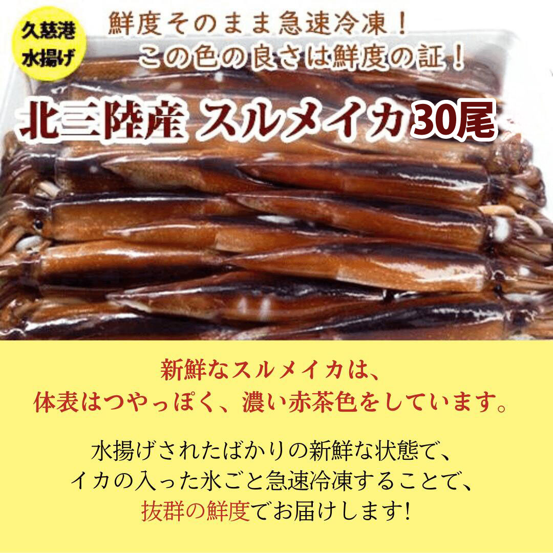 送料無料 鮮度超抜群 スルメイカ 冷凍 30尾入り(約4.5kg〜約5.5kg) するめいか 急速冷凍釣りイカを氷ごと急速冷凍