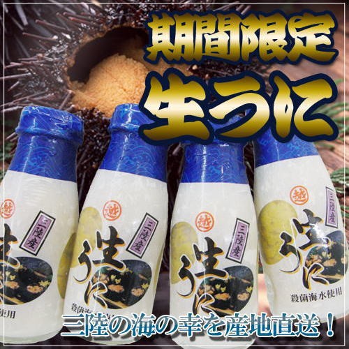 殻からひと粒ひと粒身だけをとりだし、滅菌済みの海水に入れただけの100%本物の生ウニです。