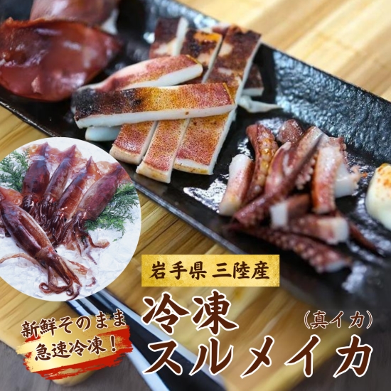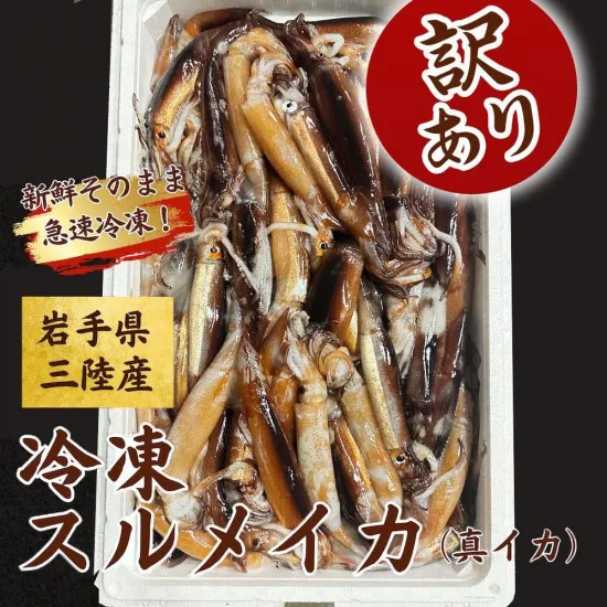 訳あり 岩手北三陸産 冷凍釣りイカ (スルメイカ) バラ 不揃い(約4kg〜約6kg)するめいか 送料無料 急速冷凍釣りイカを氷ごと急速冷凍