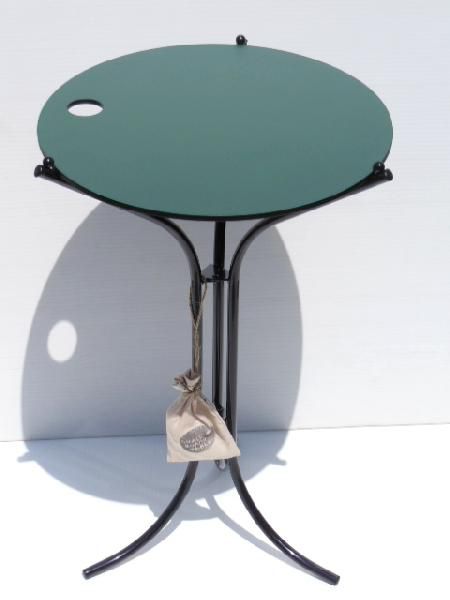 天板にチョークで書ける丸くて小さなテーブルです。