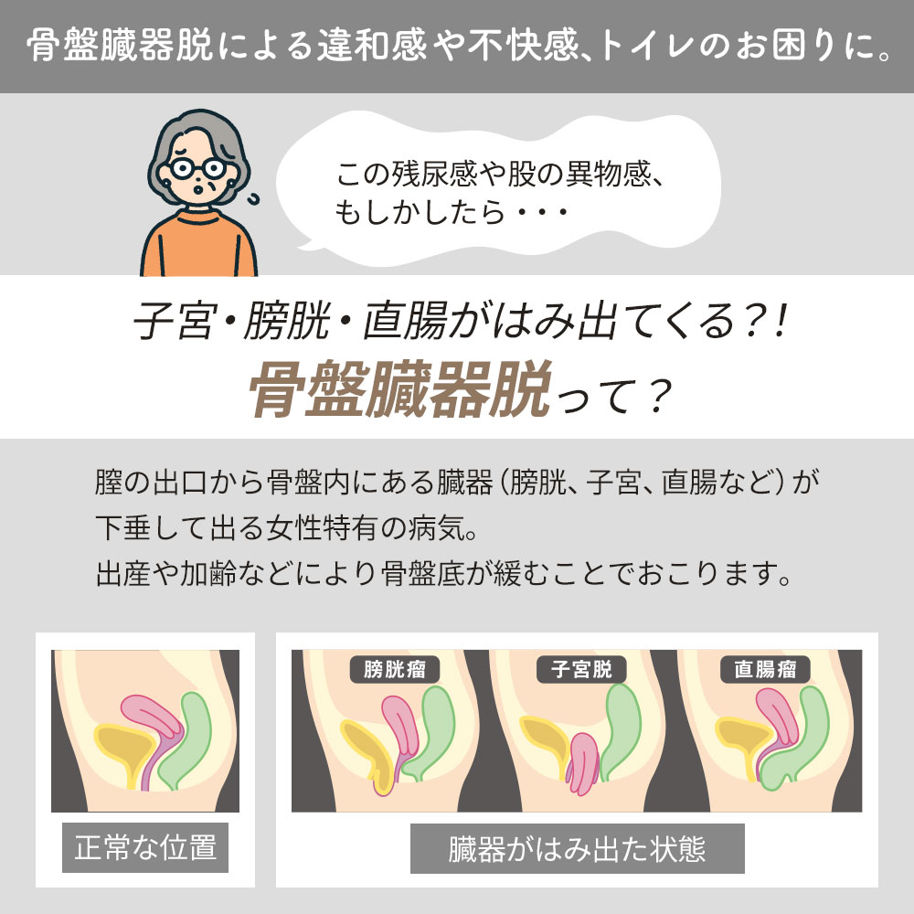 骨盤臓器脱による違和感や不快感、トイレのお困りに。