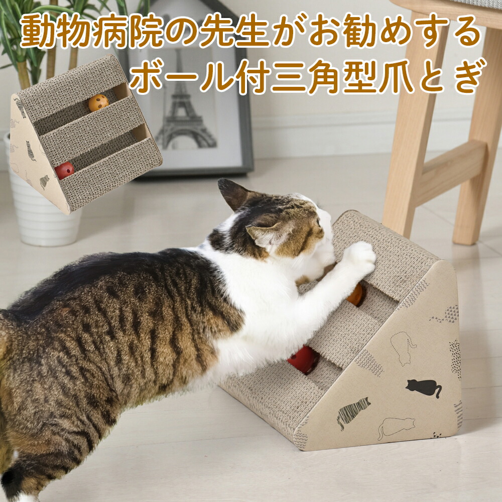 動物病院の先生がお勧めするボール付三角型爪とぎ 猫 ネコ にゃんこ 猫用品 ペット ぺっと グッズ 小物 つめとぎ 爪とぎ 爪研ぎ ダンボール 段ボール お洒落 おしゃれ オシャレ 可愛い かわいい カワイイ 猫の日 音が鳴る ボール