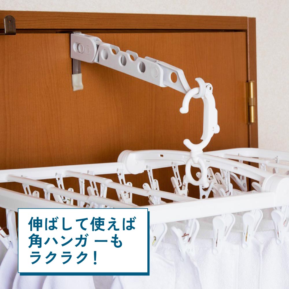 ●のばして使えば角ハンガーもラクに干せます