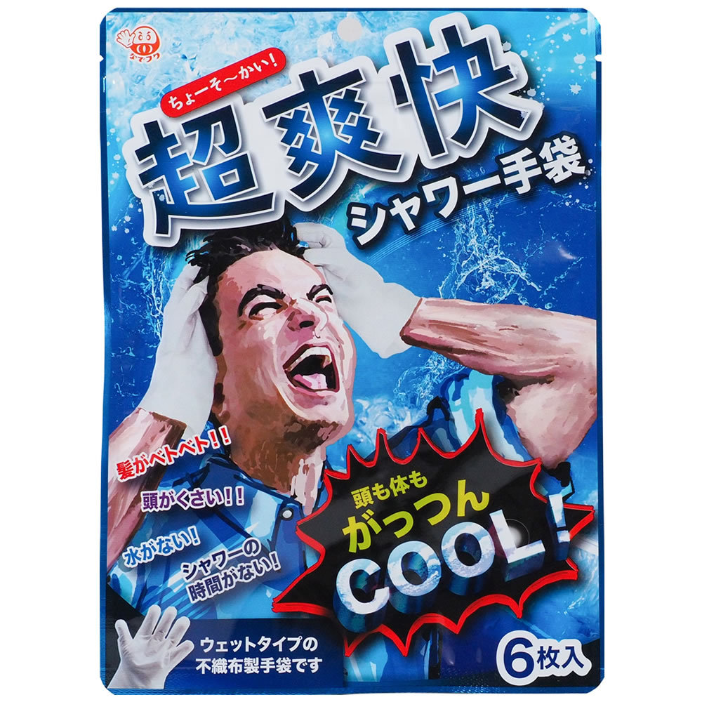 超爽快シャワー手袋6枚入 ウェットタイプ 不織布 汗 髪 頭 体 拭くだけ 水不要 洗い流し不要 メントール配合