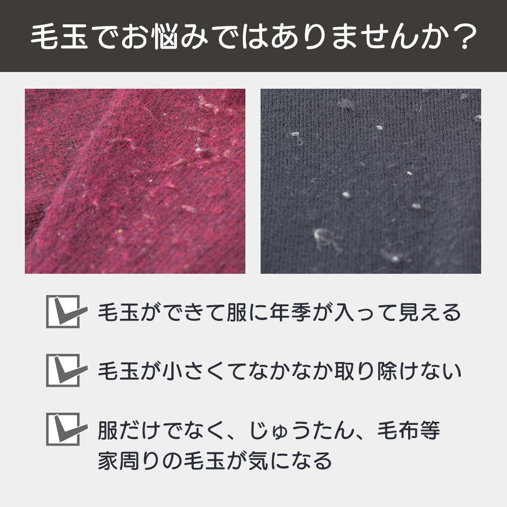アクリル・ウール・ニット類のセーターや、トレーナー・靴下等の衣類はもちろん、じゅうたん、毛布、車のシート等、毛玉のできやすい生地にご使用いただけます。