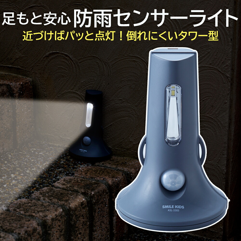 足もと安心防雨センサーライト ASL-3305 屋外 足もと 倒れにくい タワー型 置きやすい 電池式 照明 センサーライト 自動感知 階段 廊下 倉庫 玄関 ガレージ 足元ライト コードレス 人感知 自動点灯 車庫 防犯グッズ