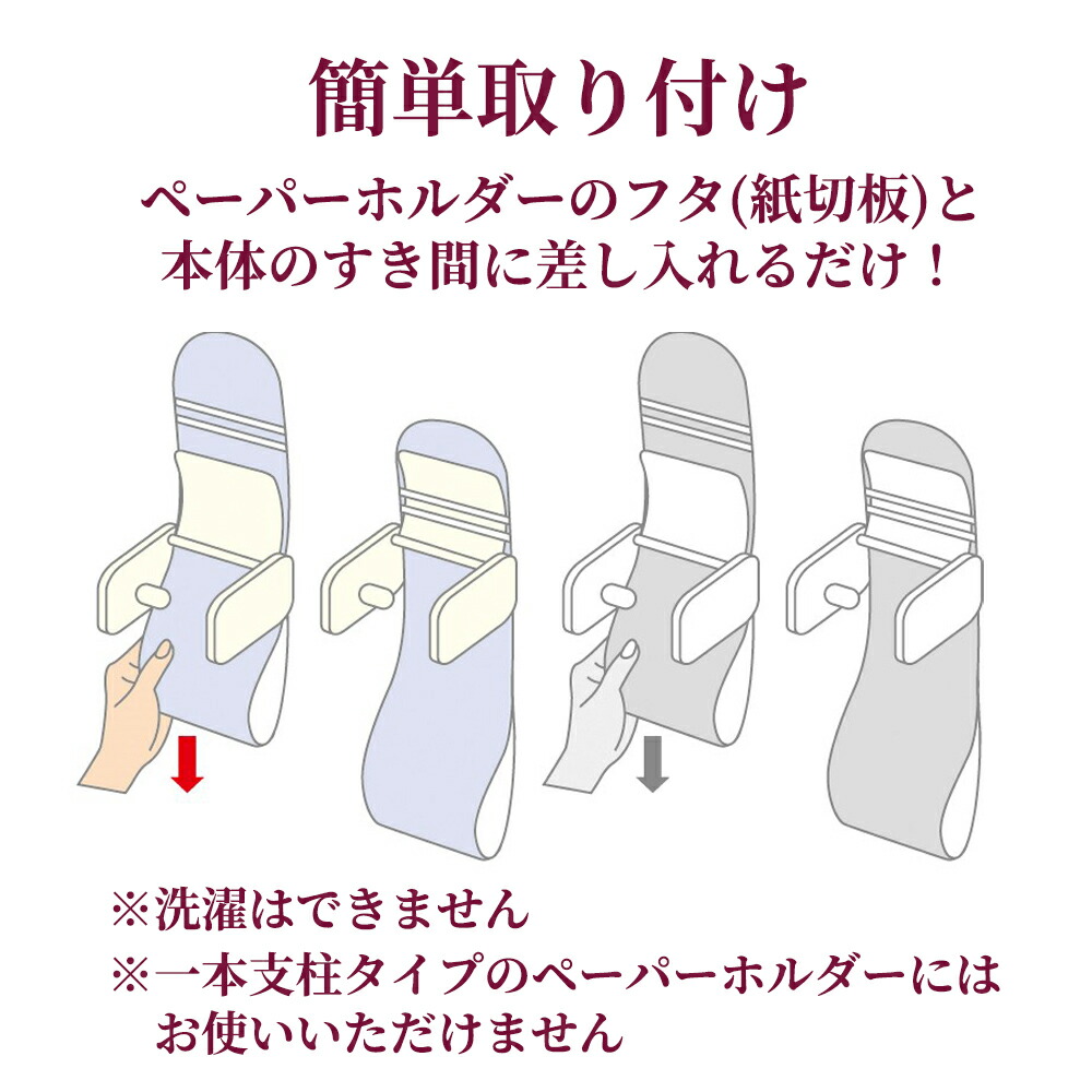ペーパーホルダーのフタ(紙切板)と本体の間に差し入れるだけの簡単取り付け!