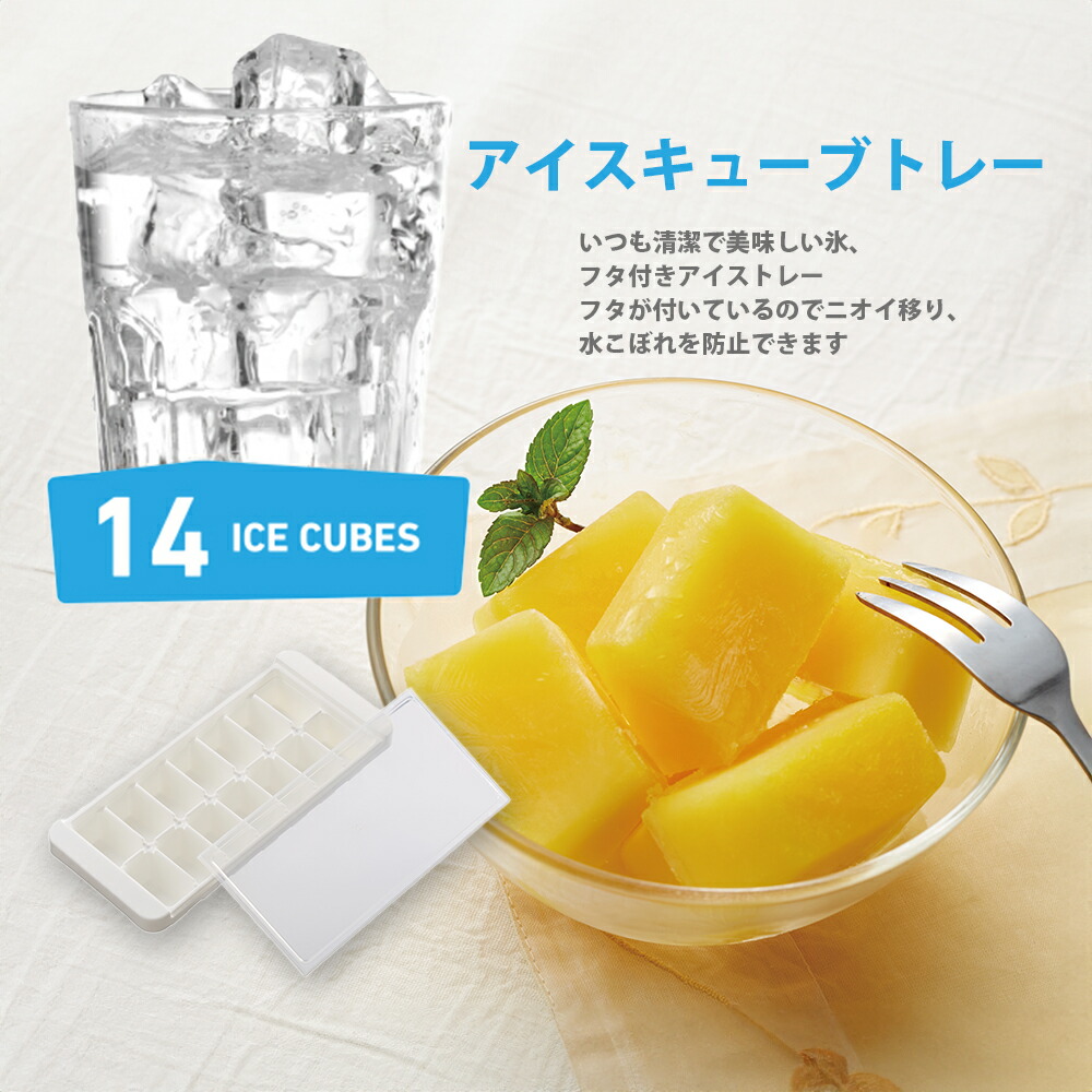 いつも清潔で美味しい氷、フタ付きアイストレーフタが付いているのでニオイ移り、水こぼれを防止できます