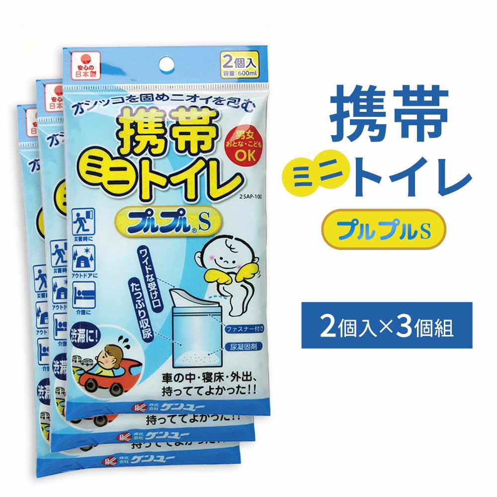 携帯ミニトイレ プルプルS 2個入×3個組 災害用 渋滞対策 備蓄 男女兼用 凝固剤 ポータブル トイレ 緊急時 介護 非常用 アウトドア キャンプ 登山
