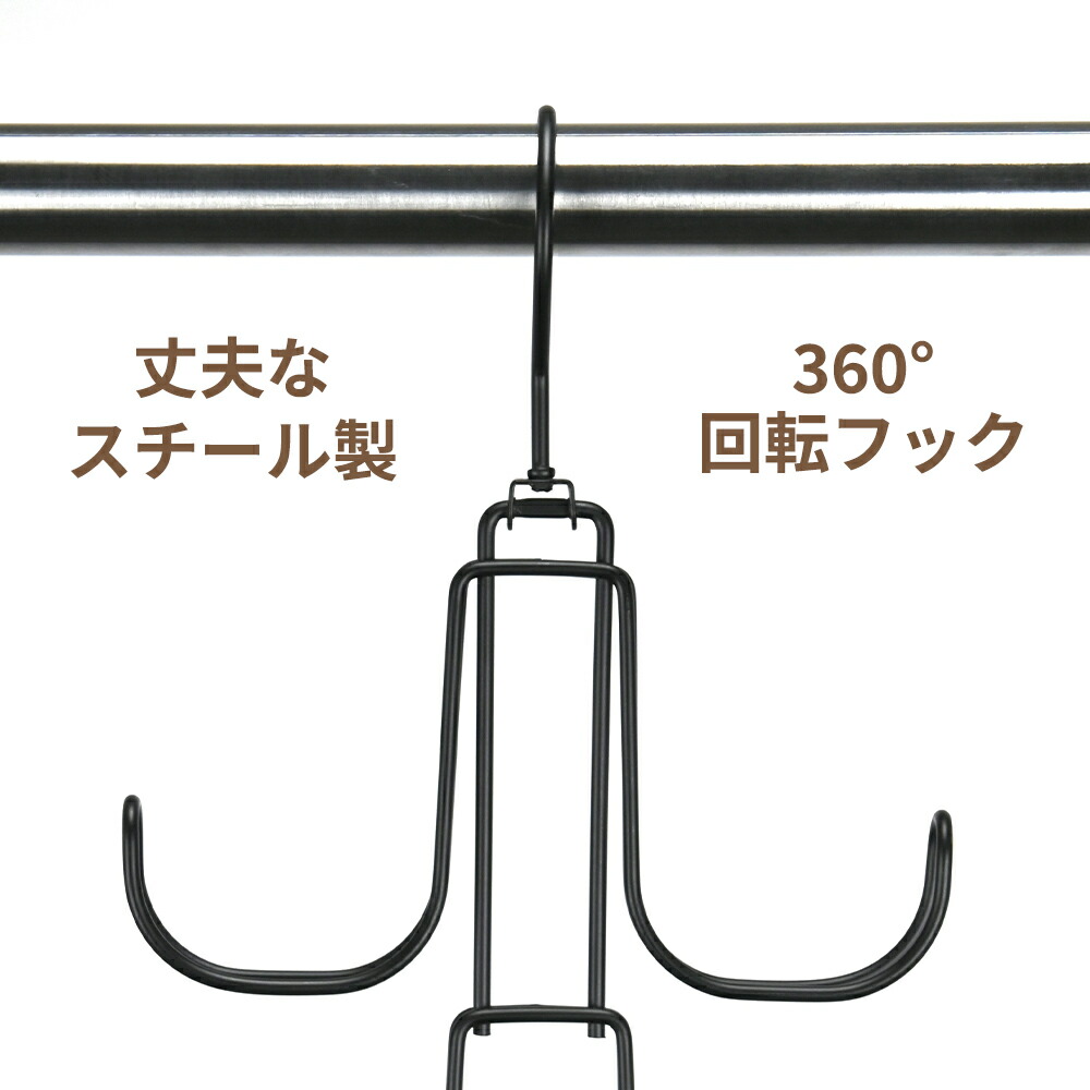 ・360°回転式フックで掛ける場所を選ばない。