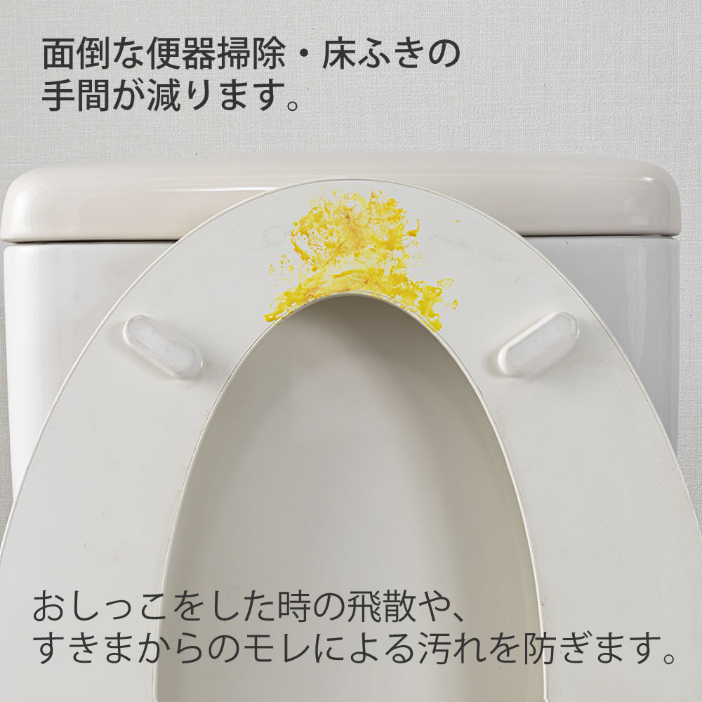 ・おしっこをした時の飛散や、すきまからのモレによる汚れを防ぎます。