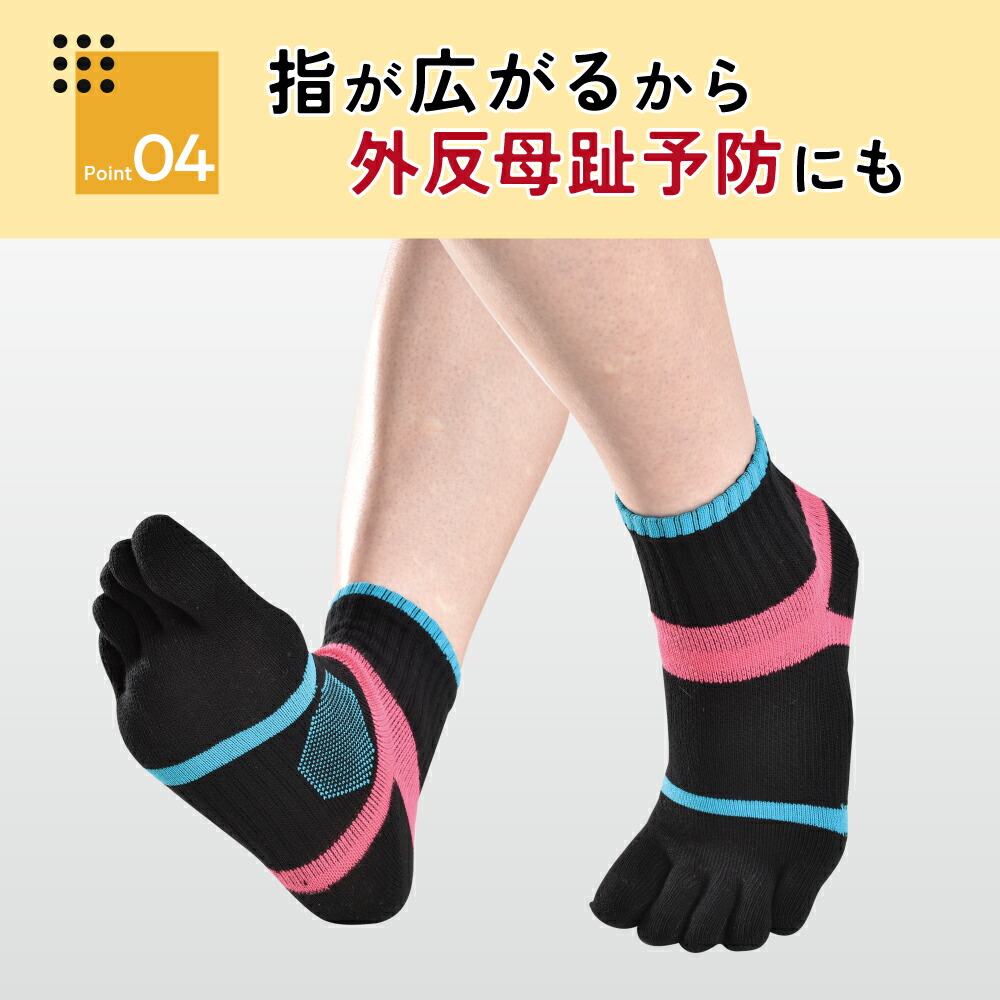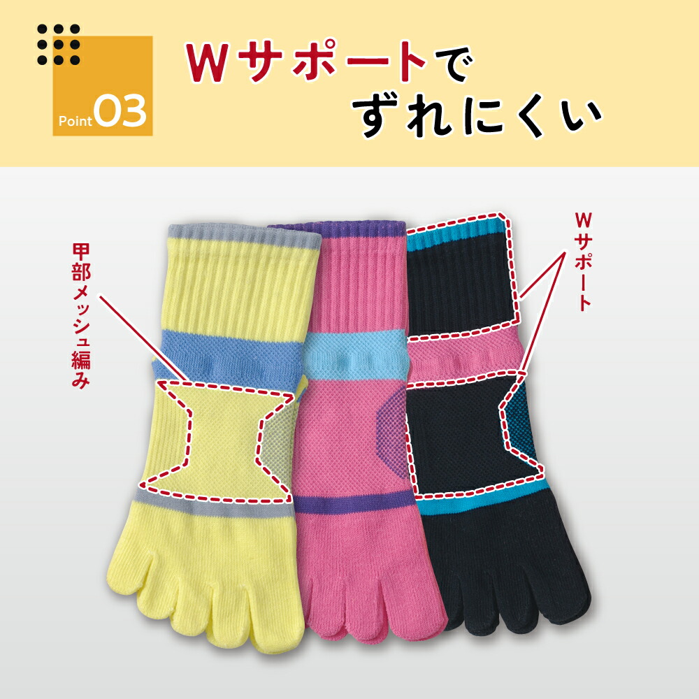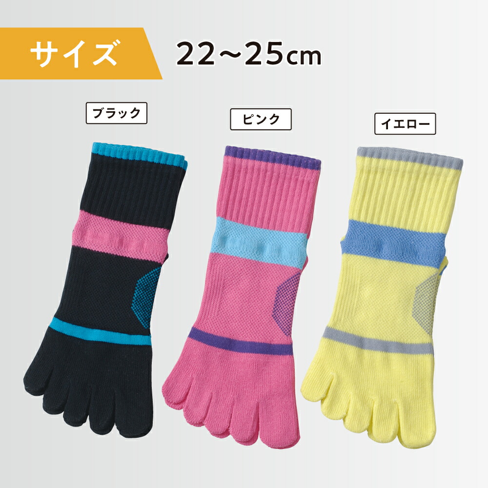 5本指Wサポートソックス 3色組:ブラック・ピンク・イエロー