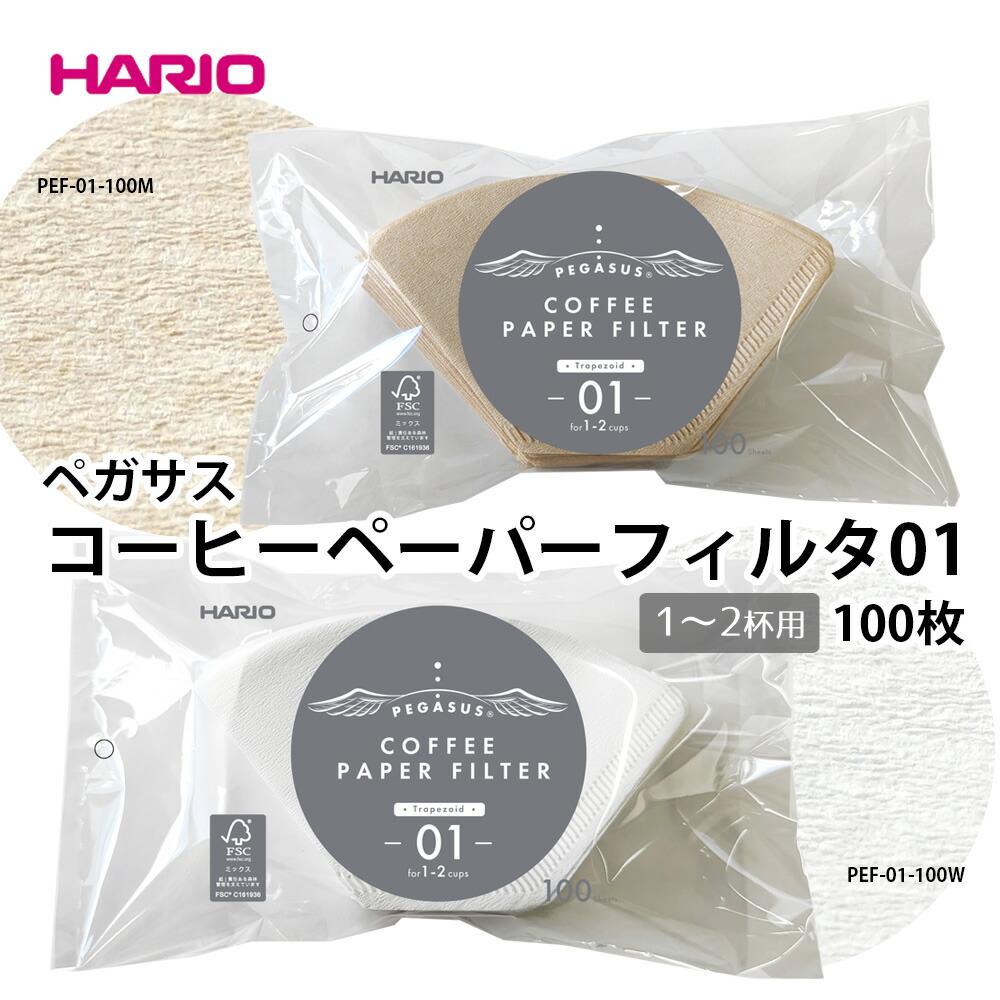 ペガサスコーヒーペーパーフィルター01 / 100枚 コーヒーペーパーフィルター HARIO hario ハリオ コーヒー 1〜2杯用 100枚入 コーヒー用品 日本製 パルプ