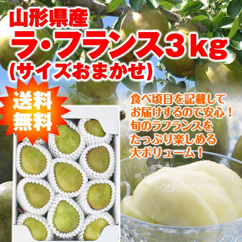 ギフト ラ・フランス 送料無料 洋梨 山形県産 3kg(サイズおまかせ)ラフランス