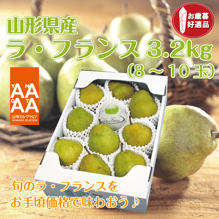 ギフト ラ・フランス 送料無料 洋梨 山形県産 3.2kg(8-10玉)3L-5L ラフランス