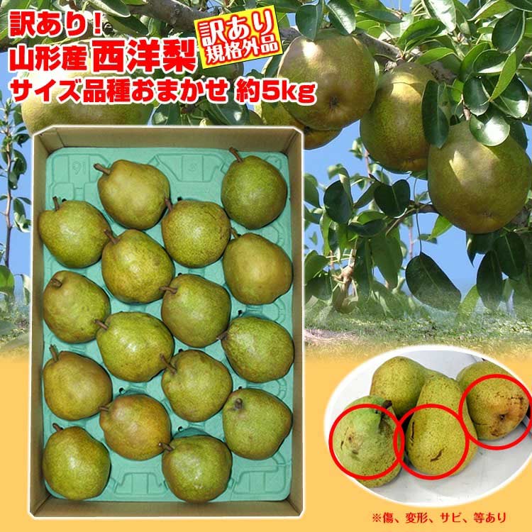 訳有り 山形県産「西洋梨」約5kg(サイズ品種おまかせ)※傷、変形、サビ等あり